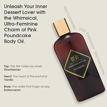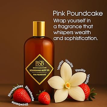 Brown Sugar Babe Pink Poundcake Body Oil, Nourishing Scented Oil for Women with Strawberry, Vanilla and Buttercream Perfume Oils, Skin Care, Paraben Free, Perfume Body-Oil, Made in USA