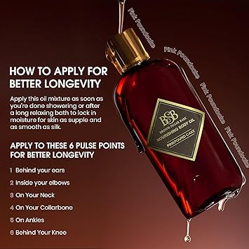 - 5-Oil Blend for Skin Nourishment: Formulated with Avocado, Grapeseed, Castor, Olive, and Sweet Almond oils, this body oil deeply hydrates, softens, and gives your skin a silky look—perfect for daily indulgence on all skin types.