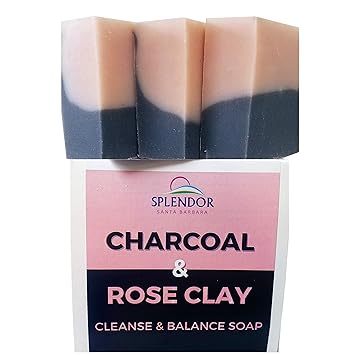 Splendor Activated Charcoal & Rose Clay Spa Face & Body Bar Soap - Handmade, Vegan, Natural, Cold-Processed
