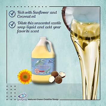 - Our unscented antibacterial castile soap cleans and kills 99.9% of germs.