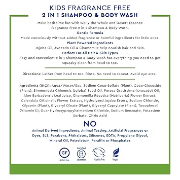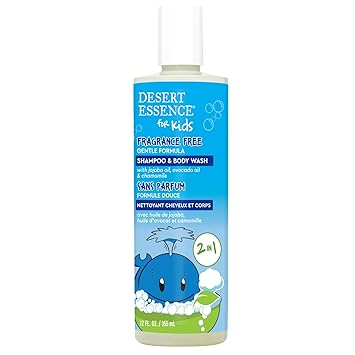 Desert Essence Kids Fragrance Free 2-in-1 Shampoo & Body Wash 12.0 fl oz - Vegan, Gluten-Free. Cruelty-Free - Leaves Hair & Skin Nourished - Gentle Formula