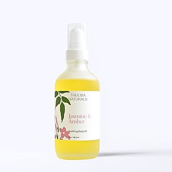Transform your skincare routine with our Jasmine-Amber Body Oil, created for those who seek both hydration and a serene escape from the everyday. Formulated with natural plant oils rich in vitamins this moisturizer deeply hydrates and nourishes your skin. Jasmine Amber essential oil is celebrated for its calming effects and ability to smooth skin texture, creating a deeply soothing experience. Its warm, inviting aroma promotes relaxation and peace. Benefits: Nourish & Glow: Natural oils deeply hydrate for healthy, radiant skin. De-Stress & Shine Jasmine oil helps to elevate one's mood. Clean & Simple: Suitable for all skin types. How to Use Warm a few drops of the aromatherapy body oil in your palms and gently massage into damp skin after your shower or bath. Handmade with natural ingredients in Fairfax, VA We donate a portion of sales to provide free lunches to vulnerable preschoolers in South Africa Recycle and compostable packaging Leaping Bunny certified USA Made