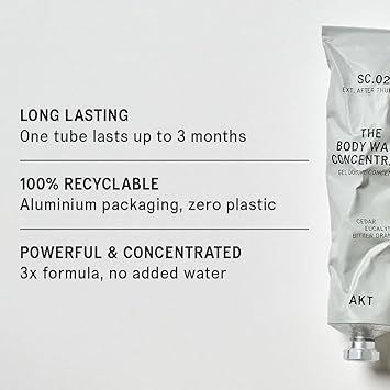 AKT The Body Wash Concentrate 3.4 Fl Oz, Natural Shower Gel with Skin-Balancing Prebiotics, Body Wash Women & Men, with Olive Squalane & Vitamin E, Sc.02 After Thunder, All Genders