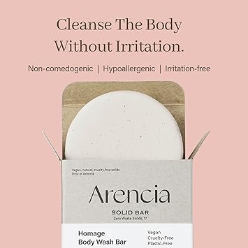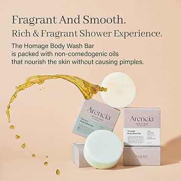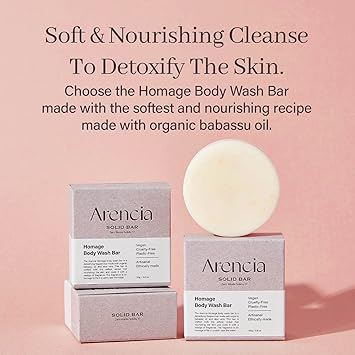 ARENCIA Homage Natual Body Soap Bar for Softer Skin - Jojoba Oil, Castor Oil for Soothing, Hydrating, Body and Facial Cleanser, Plastic-Free, Eco-friendly, Vegan, Sustainable