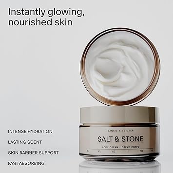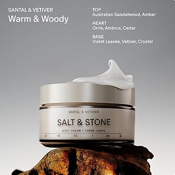 Salt & Stone Body Cream - Santal & Vetiver | Hydrating Formula with Seaweed Extracts, Spirulina & Squalane | Deep Hydration, Skin Barrier Support & Healthy Glow | for all Skin Types (6.7 fl oz)