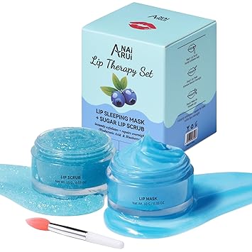 - LIP CARE SET -- ANAiRUi Hyaluronic Acid & Blueberry Lip Care Set includes Lip Sleeping Mask and Cane Sugar Lip Scrub, this lip care set gently softens cuticles and deeply repairs lips, especially for dry, chapped and fine lines.