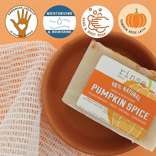 Rinse Bath & Body Pumpkin Spice Handmade Soap - Shea & Cocoa Butter | Warm Pumkin Spice Scent | Essential Oils | Vegan Friendly | 4.25oz