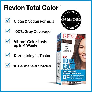 Meet Revlon Total Color. A hair color that’s free of many ingredients and a formula that’s not only gentle on hair but respectful of scalp, too. Revlon Color Surround Technology allows color to penetrate deeply into each and every strand for rich, natural-looking results from root to tip. This high-impact color system provides 100% gray coverage—even on the most stubborn grays! That means 6 weeks of rich, vibrant color and ultra-moisturized hair with less breakage. Healthier looking hair and brilliant, shiny results! Hair so soft, won’t want to stop touching it