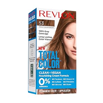 Revlon Total Color Permanent Hair Color, Clean and Vegan, 100% Gray Coverage Hair Dye, 53 Medium Golden Brown