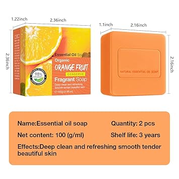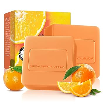 AMY'S DIARY Orange Bar Soap Handmade Vegan Natural Bar Soap For Face And Body, With Premium Essential Oils, Rich Moisture & Gentle Cleansing For Women 2 Packs