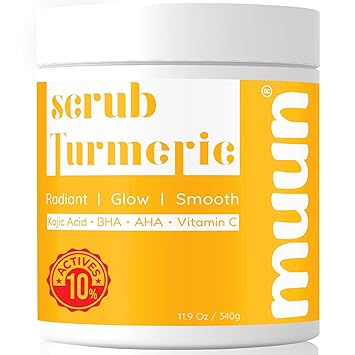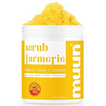 Muun Turmeric Scrub with Kojic Acid AHA/BHA Face &Body - Exfoliator Dark spot Remover- Ingrown Hair Treatment Bikini Area Inner Thighs Armpit Underarm Exfoliating