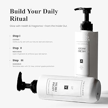 Atom Fresh Sulfate Free Body Wash for Sensitive Skin, Rose Fressia Oud Scented Natural Body Shower - Moisturizing Shower Gel & Gentle Cleanser for Women's Body Care, 16.2 oz Luxury Beauty Products