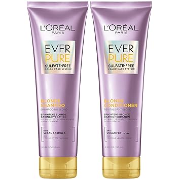 L'Oreal Paris Blonde Sulfate Free Shampoo and Conditioner for Color-Treated Hair, Neutralizes Brass + Balances, EverPure, 8.5 Fl Oz, Set of 2