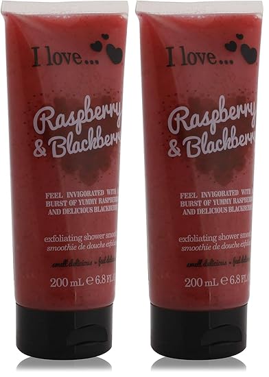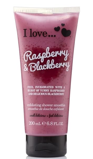 I Love Raspberry and Blackberry Exfoliating Shower Smoothie - Exfoliating Body Scrub and Body Wash - Cleanse and Soften Skin - Fruity Scent - 6.8 oz