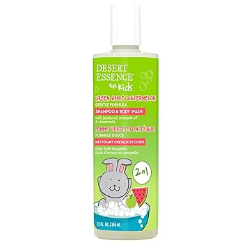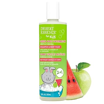 Desert Essence Kids 2-in-1 Shampoo & Body Wash 12.0 fl oz - Vegan, Gluten-Free. Cruelty-Free - Leaves Hair & Skin Nourished - Gentle Formula (Green Apple)