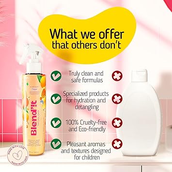 BLENDIT Hair Detangler Spray for Kids & Women - Hydrating & UV Protectant for Hair, with Chamomile, Passion Fruit, and Goldenberry - Softens, Adds Shine, and Controls Frizz - Vegan - 250ml