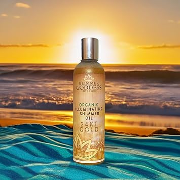 Elevate your skincare routine with Glimmer Goddess Organic Illuminating Shimmer Body & Face Oil. Our luxurious formula combines certified organic ingredients, including aloe vera, fractionated coconut oil, sweet almond oil, and vitamin E, to provide deep hydration and a radiant glow. Infused with 24K gold mica and aromatic essential oils, this oil imparts a subtle shimmer, enhancing your natural beauty. Available in five captivating shades, our shimmer oil is designed to evoke your inner goddess. The lightweight, non-greasy formula absorbs quickly, leaving your skin feeling soft and luminous. Ideal for special occasions or daily use, it adds a touch of elegance to any look. Our commitment to ethical beauty means this product is vegan, cruelty-free, and free from harmful chemicals. Proudly made in the USA, Glimmer Goddess ensures quality and purity in every bottle.