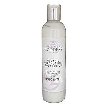 GLIMMER GODDESS Organic Body Lotion - Unscented Coconut Milk, Moisturizes for Soft Silky Skin All Day 8 oz