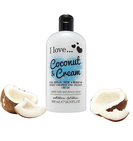 I Love love Coconut and Cream Bath and Shower Cream - Hydrating Body Wash and Bubble Bath - With Natural Fruit Extracts and Provitamin B5-16.9 oz