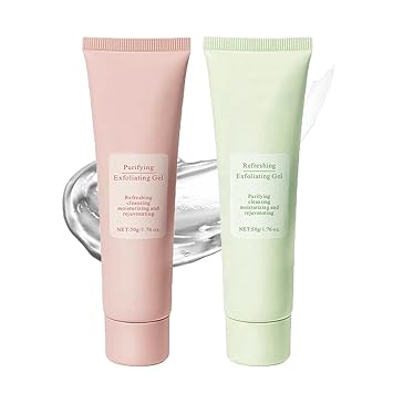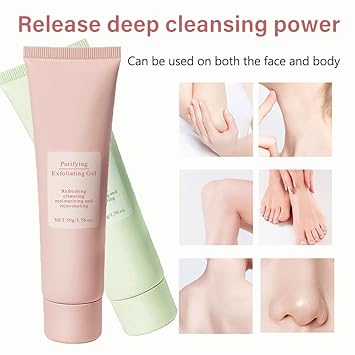 2Pcs Purifying Exfoliating Gel - Face & Body Scrub for All Skin Types | Gentle Exfoliating Cleanser, Vegan & No Harsh Scrubs (Set B)