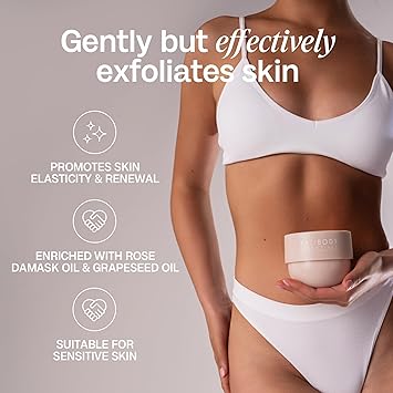 SUGAR BASED BODY SCRUB Formulated with a blend of pink french clay and nourishing plant based oils, our body scrub gently but effectively exfoliates skin while replenishing moisture. Leaves skin feeling fresh and hydrated with a Light Rose scent.
