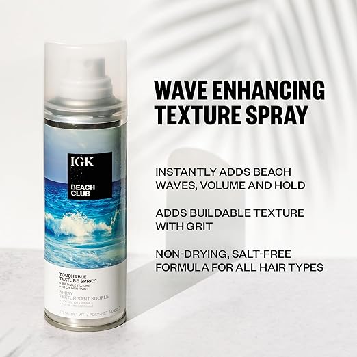 IGK BEACH CLUB Touchable Texture Spray | Hold + Volume + Lightweight | Vegan + Cruelty Free |