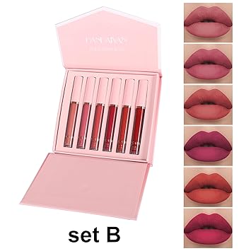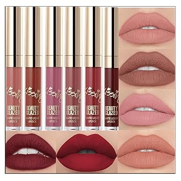 - 6 Colors Velvet Liquid Lip Stick Set, full-size lip gloss of the most popular colors. Charming matte, long-lasting and waterproof, Not stick cup, do not fade.