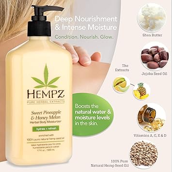 Hempz Sweet Pineapple & Honey Melon Moisturizing Skin Lotion, Body Moisturizer with Jojoba, Natural Extracts, Vitamin A and E, 17 oz, 2 Pack Bundle