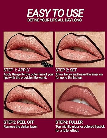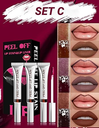 Erinde 3 Colors Peel Off Lip Liner Stain, Long Lasting Waterproof Lip Tattoo, Matte Finish Transfer-Proof Lip Stain for All Day Wear, Highly Pigmented Nude Lip Color, Vegan & Cruelty-Free, Set C