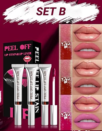 Erinde 3 Colors Peel Off Lip Liner Stain, Long Lasting Waterproof Lip Tattoo, Matte Finish Transfer-Proof Lip Stain for All Day Wear, Highly Pigmented Nude Lip Color, Vegan & Cruelty-Free, Set B