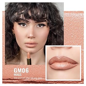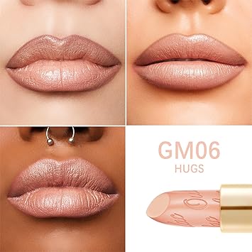 Oulac Matte Nude Peach Lipstick with Glow Metallic Finish - Vegan Lipstick for Women, Creamy Texture, Hydrating Clean Beauty Formula, High-End Magnetic Hook Design, GM06 Hugs