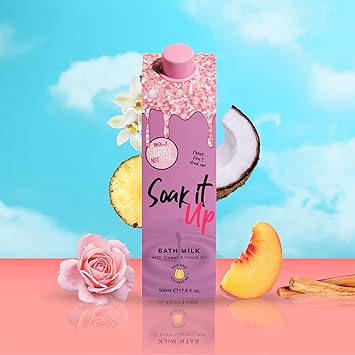 Indulge in a luxurious bath experience with the Sorry Not Sorry Soak It Up Bath Milk by So…?. This elegantly formulated bath essence is designed to pour over you and wash away your worries, leaving you feeling refreshed and rejuvenated. Infused with the reviving infusion of sweet almond oil and sweet vanilla, this bath milk provides a relaxing and aromatic bath experience that gently cleanses your skin. The soothing vanilla-scented body care transforms your bath time into a serene escape, with a scent that can last up to 6 hours, enveloping you in warmth and comfort. This moisturizing bath soak for dry skin is perfect for those seeking a relaxing bath soak that doubles as a bubble bath for women and adults alike. Committed to quality and sustainability, this bath milk is vegan, cruelty-free, and comes in recyclable packaging, ensuring you can pamper yourself guilt-free.