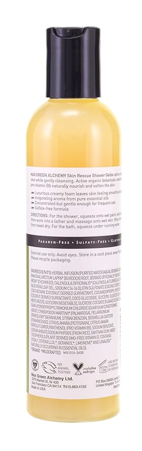 Skin Rescue Shower Gelee is free of parabens, sulfates and other ingredients that may dry skin, cause irritation or aggravate flare ups. The ingredients are sourced organically when possible, and are vegan and animal cruelty free. It explodes into an abundant creamy lather with a wonderful warm and seductive unisex aroma and with its nourishing ingredients, it can be safely used as a general purpose daily wash for every body.