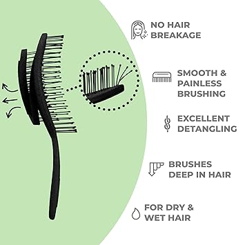 - Ergonomic Design: The bristle brush has a lightweight and comfortable handle and a spiralled ergonomic design (With the brush adapting to the shape of your scalp). This creates a soothing brushing experience without any damage or split-ends