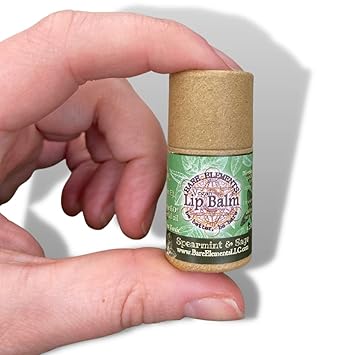 Natural Vegan Lip Balm | Low Waste - Compostable Label - Biodegradable Packaging - Non Toxic - All Natural - No Synthetic Dyes or Fragrances (Spearmint & Sage)