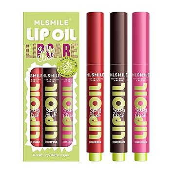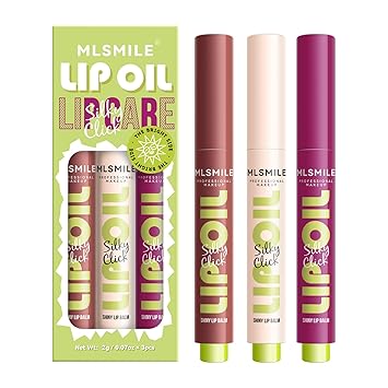 3 Colors Fat Lip Oil Click Slick,Press Lipstick Set,Moisturizing Lip Balm,High Pigment Glow Lip Oil,Long-lasting,Pigmented Vegan,Lightweight and Glossy Lip Plumper with Coconut Oil-Set B