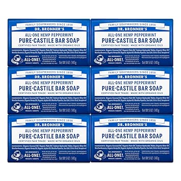 Dr. Bronner's - Pure-Castile Bar Soap (Peppermint, 5 ounce, 6-Pack) - Made with Organic Oils, For Face, Body & Hair, Gentle & Moisturizing, Biodegradable, Vegan, Cruelty-free, Non-GMO
