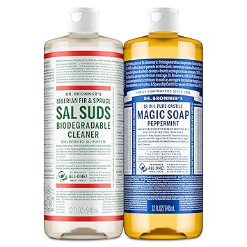 - THIS VARIETY PACK INCLUDES: (1) 32 oz Dr. Bronner’s Sal Suds Biodegradable Cleaner & (1) 32 oz Peppermint Pure-Castile Magic Soap - a must-have duo for body care & home cleaning. A perfect castile soap and all-purpose cleaner for your daily routine