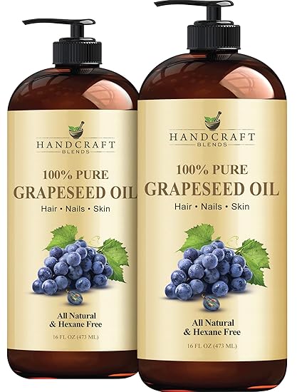 Handcraft Blends Grapeseed Oil - Cold-Pressed 16 Fl Oz - 100% Pure and Natural - Premium Grade Carrier Oil for Skin and Hair - Hair and Body - Massage - Hexane-Free