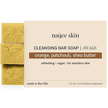 Patchouli & Orange Soap Bar (3 Pack), Vegan Patchouli Bar Soap For Dry & Sensitive Skin, Handmade with Organic Ingredients, Naqee Skin