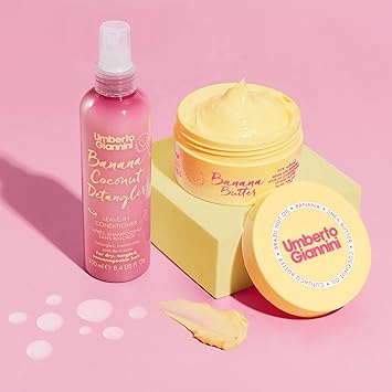 Umberto Giannini Coily Banana Butter Vegan Leave-in Conditioner & Banana Coconut Detangler - Leave in Conditioning Spray & Cream Duo, Yellow