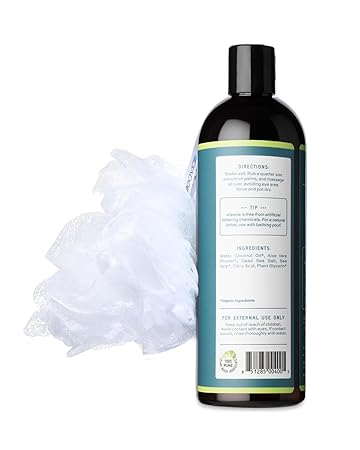 Aleavia Enzymatic Body Cleanse with Loofah Poof - Fragrance-Free Organic & All-Natural Prebiotic, Vegan Body Wash - Sulfate-Free Body Cleanser - 16 Oz.