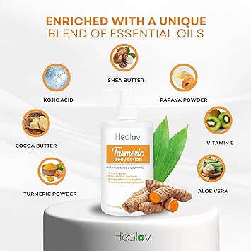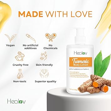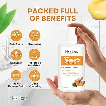 - EXPERIENCE THE RADIANCE: Our Turmeric Body Lotion, an illuminating and reviving moisturizer, is infused with organic turmeric, targeting spots, marks, and discoloration for a vibrant complexion and refined tone.