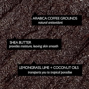 - NATURAL BODY EXFOLIATOR: Transport to tropical paradise with this coffee body scrub blended with sea salt, lime and coconut oil to buff away dead, dry skin cells.