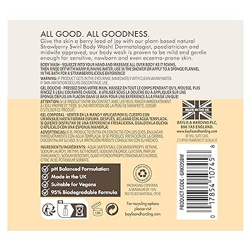 Baylis & Harding Goodness Kids Strawberry Swirl Natural Body Wash 16.9 fl. oz (Pack of 3) - Biodegradable Formula - Vegan Friendly