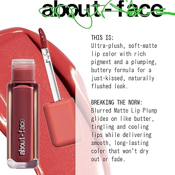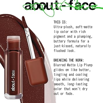 about-face Blur Matte Lip Plump - Soft-Matte Liquid Lipstick with Plumping Effect - Hydrating, Vegan, Cruelty-Free, Clean Beauty - 0.2 oz (Petit Rouge - Nude Brown)