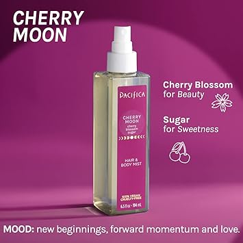 Pacifica Beauty | Cherry Moon Hair Perfume & Body Spray | Cherry Blossom, Sugar Notes | Natural + Essential Oils | Alcohol Free | Clean Fragrance | Vegan + Cruelty Free