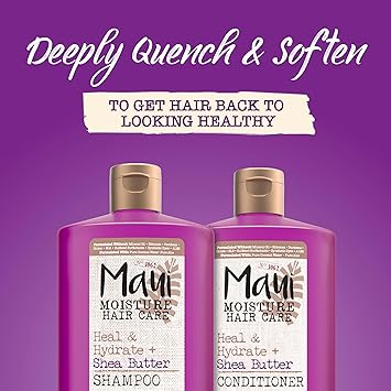 Maui Moisture Heal & Hydrate + Shea Butter Shampoo for Dry, Damaged Curls Helps Revive Curly & Coily Hair with Coconut Oil & Macadamia Oil, Vegan & Sulfate-Free Surfactants, 25.4 fl. oz