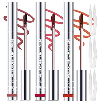 3 Colors Peel Off Lip Liner Stain with Tweezer, Long Lasting Waterproof Lip Tint Stains Makeup Set with Matte Finish for Women, Natural Look, Easy to Use, for All Skin Types (#3,6,7)