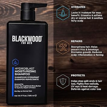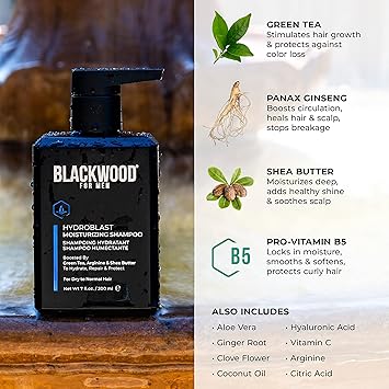 Blackwood For Men Hydroblast Moisturizing Shampoo - Men's Shampoo for Coarse, Dry, & Curly Hair - Infused with Ginseng & Ginger- Natural Vegan Formula -Sulfate Free, Paraben Free & Cruelty Free(17 Oz)
